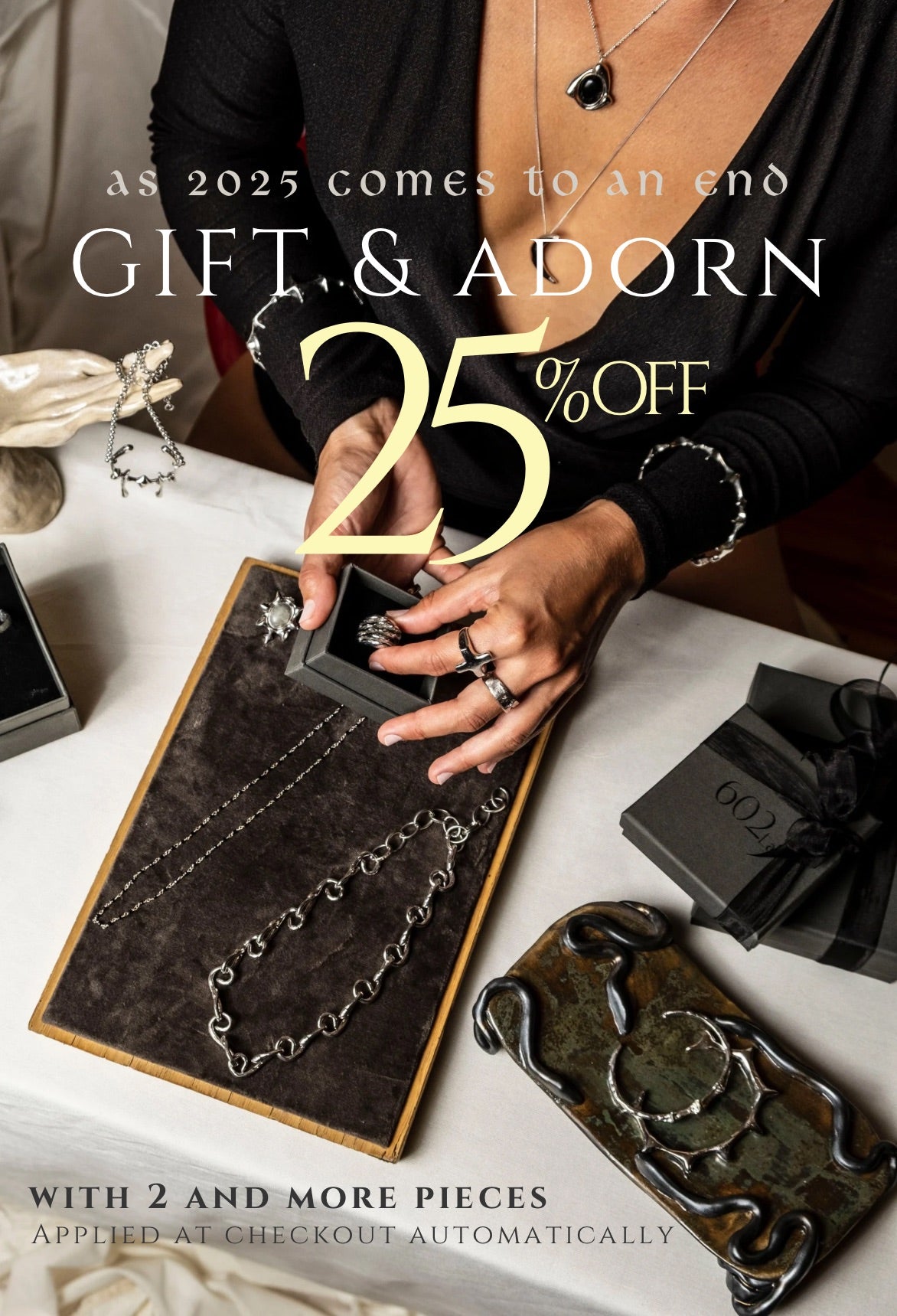 602Lab’in modern tasarımlarına ilham olan gerçek ve soyut kemik figürleri, yaşamın değerini ve antik bilgeliği barındırıyor. Yapısındaki oyuklar ve çıkıntılar ile kusurlu varoluşumuzun içindeki mükemmelliğin hatırlatıcısı tasarım takılar, tek başına sade bir stili öne çıkarabileceği gibi birlikte de kombine edilebilir. Takanlara doğanın zarafeti, yaşamın sonsuzluğu ve toprağın koruyuculuğunu hatırlatması dileğiyle.