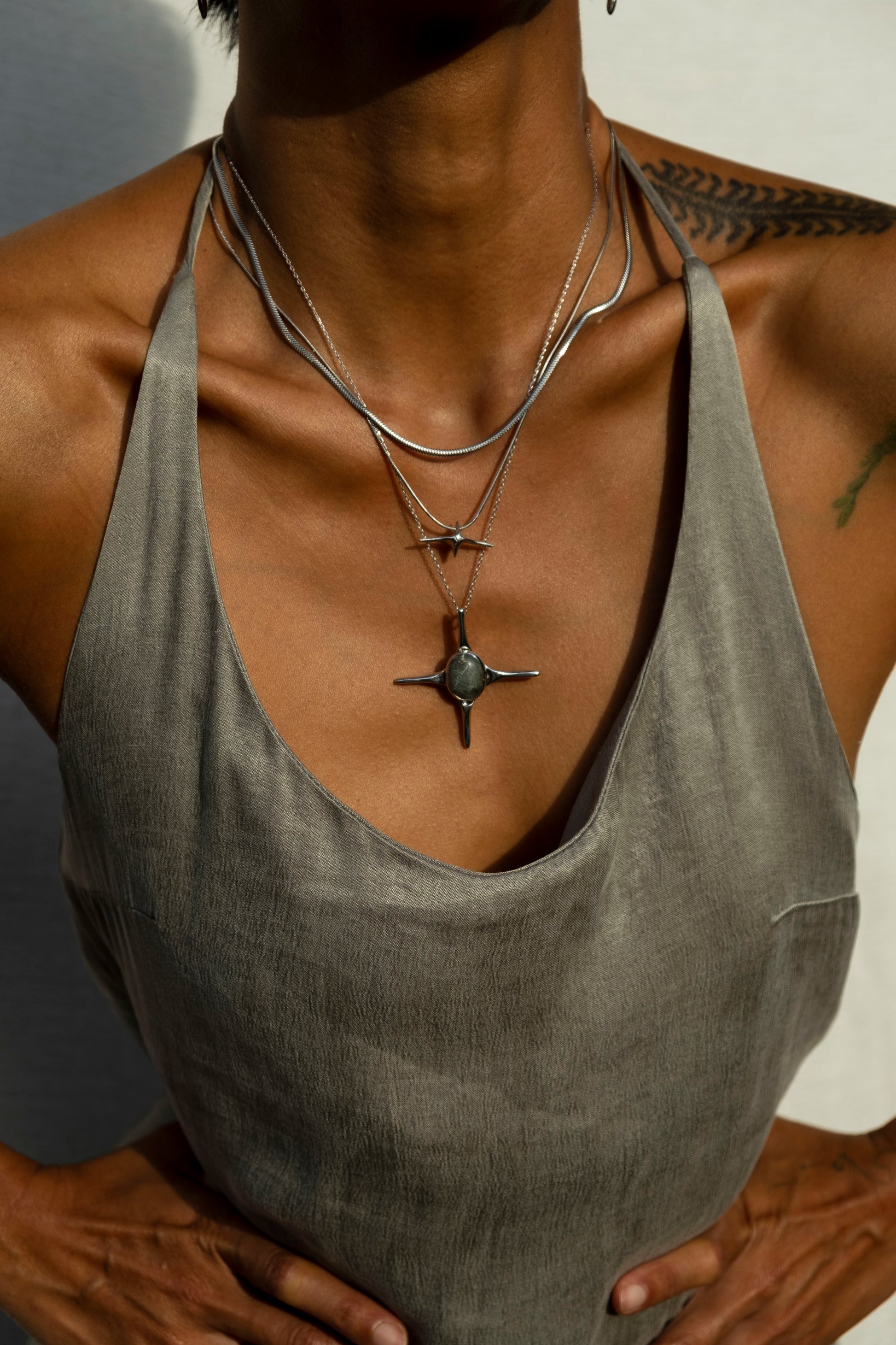 opinal necklace + quadro necklace + italian flat chain necklace